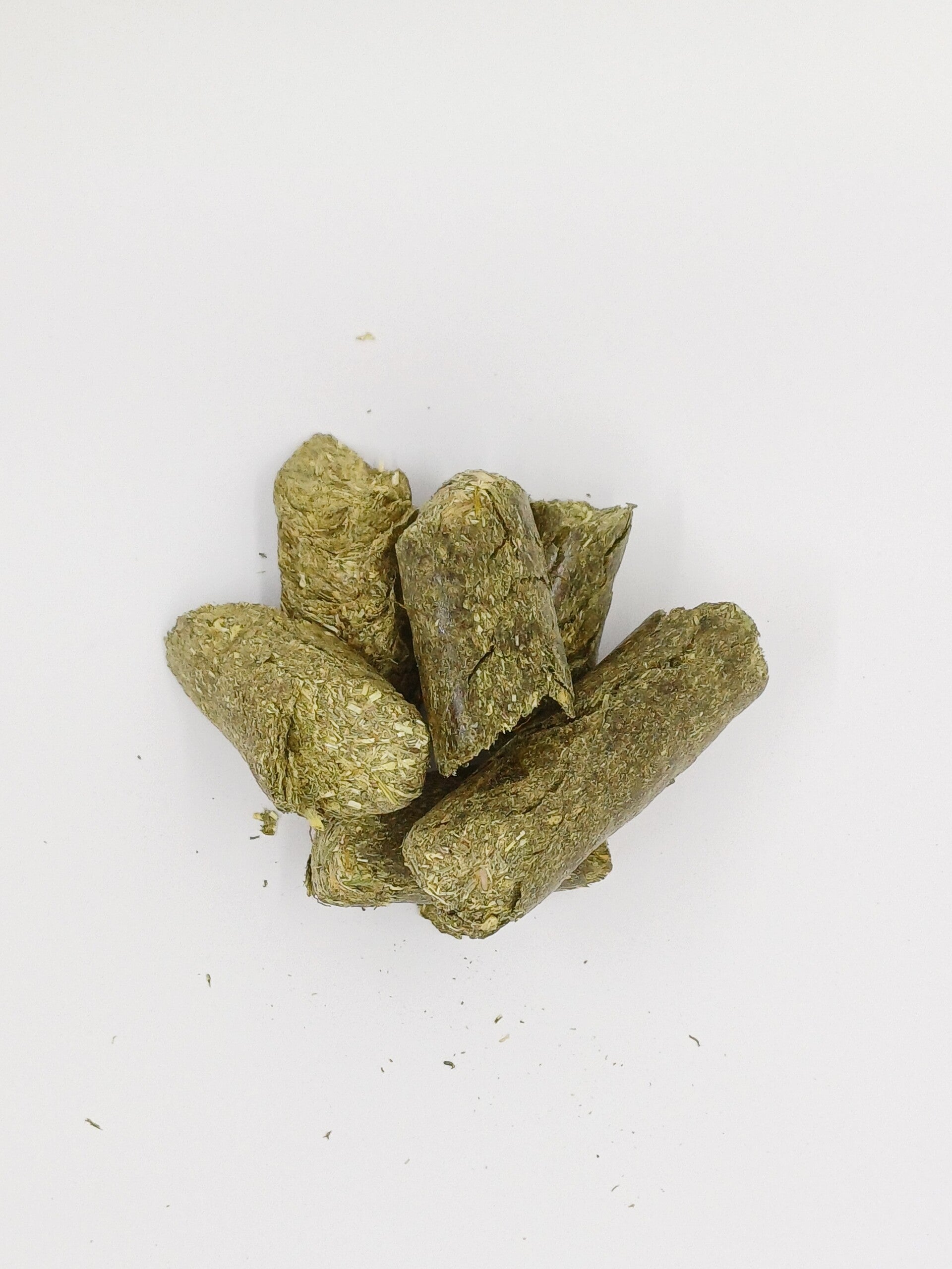 Les friandises 100% foin sont riches en fibres et hautement digestibles.